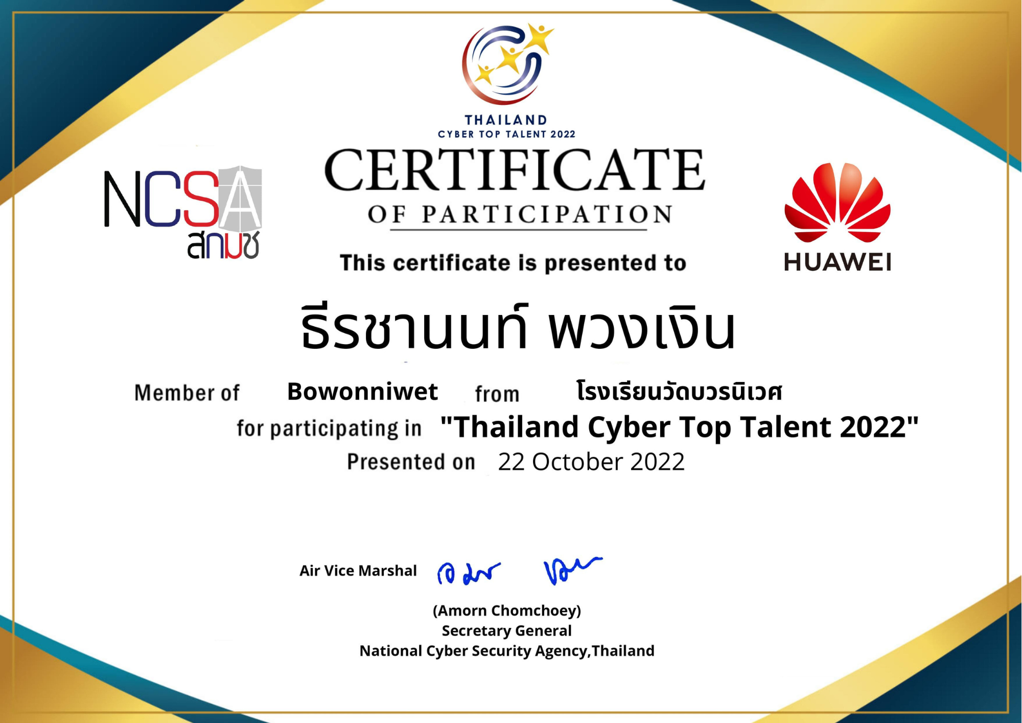 - เข้าร่วมการแข่งขัน Thailand Cyber Top Talent 2022