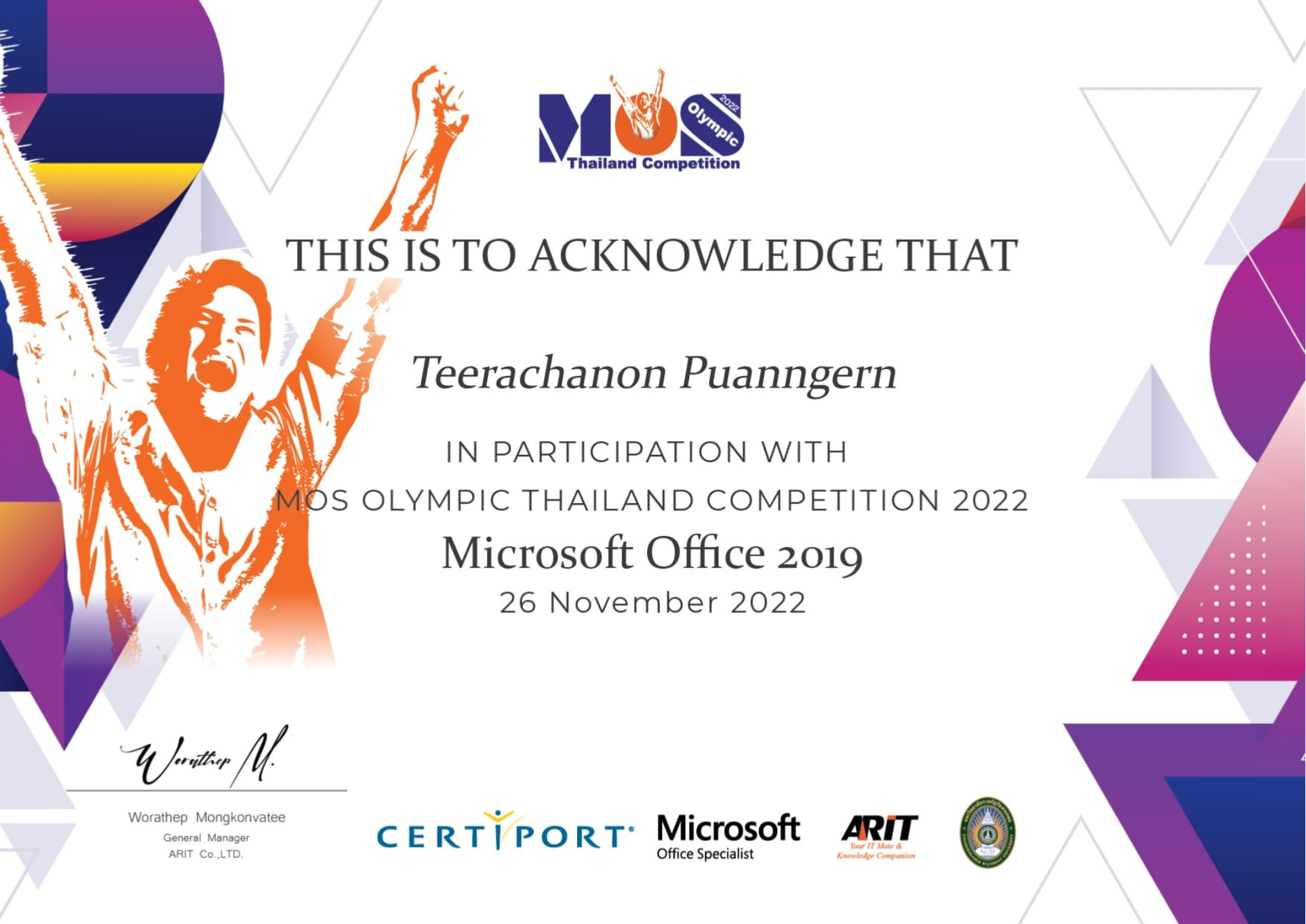 - เข้าร่วมการแข่งขัน MOS Olympic Thailand Competition 2022 (Microsoft Office 2019)