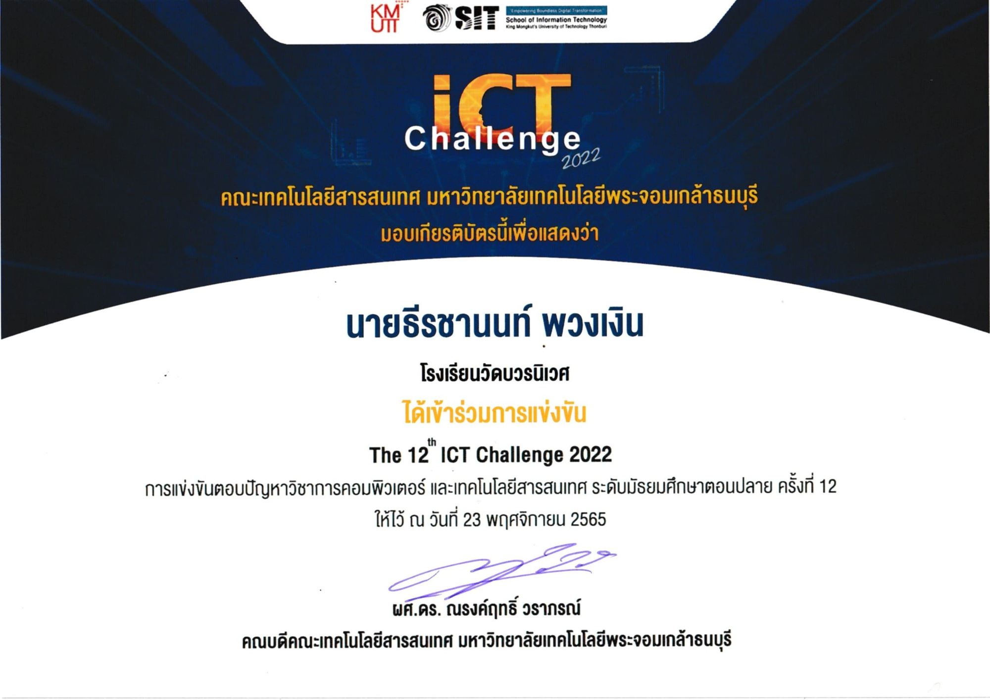 - เข้าร่วมการแข่งขัน ตอบปัญหาวิชาการคอมพิวเตอร์ (ICT Challenge 2022)
