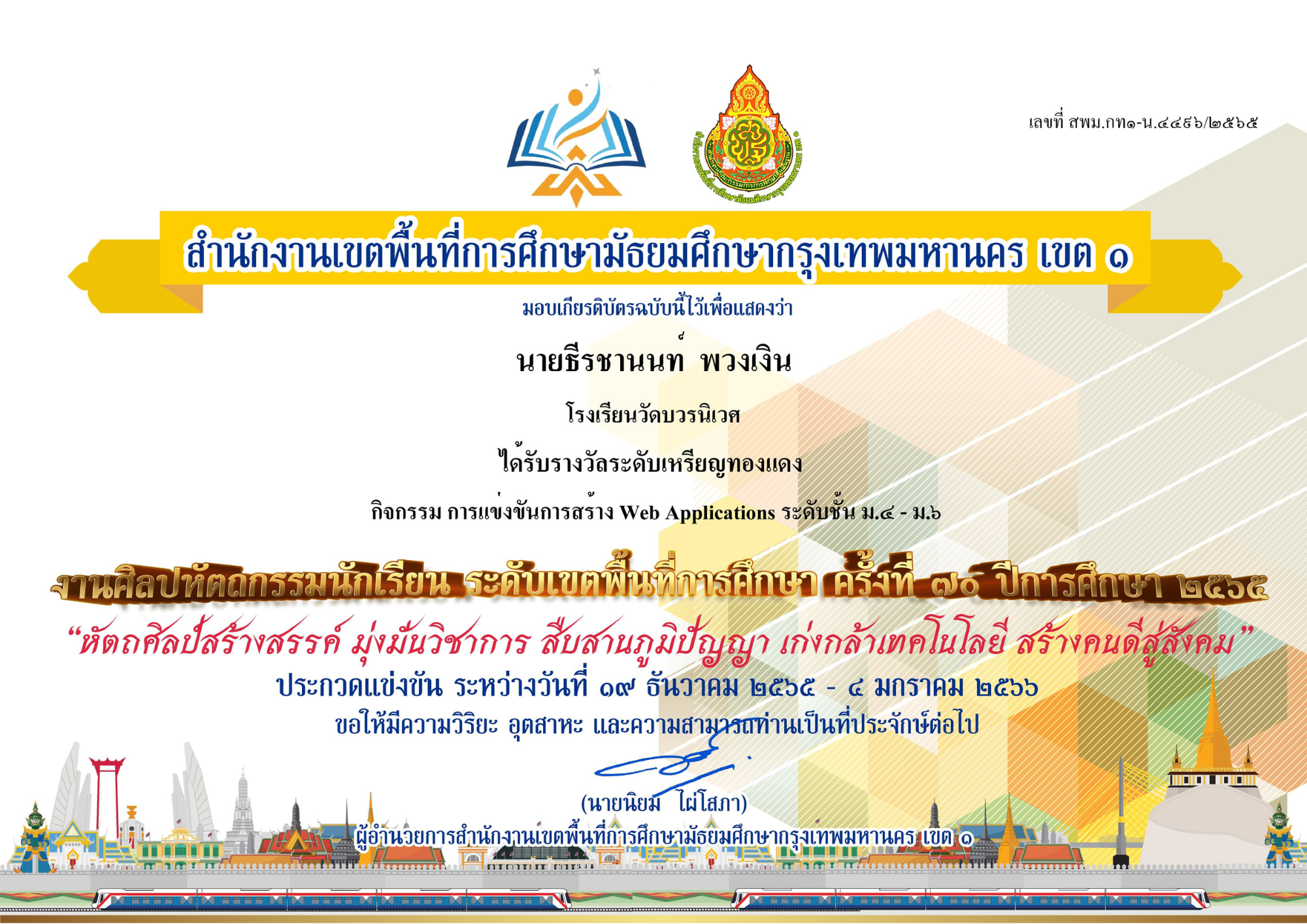สวัสดีครับทุกคน ปัจจุบันผมศึกษาอยู่ที่โรงเรียนวัดบวรนิเวศ แผนการเรียน ภาษาอังกฤษ-ดิจิทัล ในเวลาว่างผมมักจะเขียนโค้ด และผมชอบที่จะพัฒนาเว็บไซต์ ควบคุมเครื่องเสียง ตัดต่อเสียง หรืออื่นๆที่เกี่ยวกับเทคโนโลยีครับ