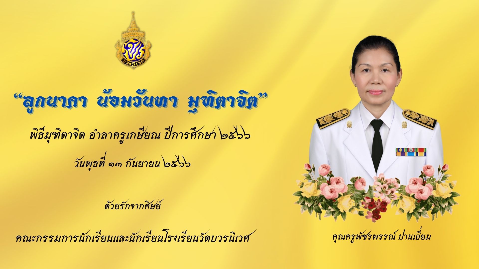 ผมได้รับหน้าที่ให้วางแผนจัดกิจกรรมมุฑิตาจิต อำลาครูเกษียณร่วมกับทีมงานคณะกรรมการนักเรียน โดยผมได้ทำ VTR และโปสเตอร์งาน